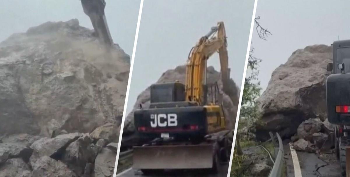 Da's pech: rotsblok op de weg